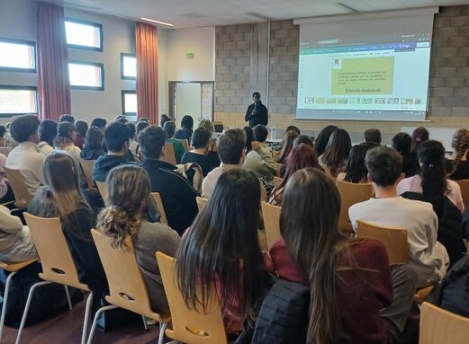Mardi 17 février, dans le cadre de l’opération Renvoyé Spécial en partenariat avec le CLEMI, les élèves de 1G4, de Terminale HLP et DGEMC, ainsi que des éco-délégués et des élèves de la webradio et du dispositif Cordées de la Réussite, ont eu l'opportunité de rencontrer et d’échanger avec un journaliste congolais en exil.