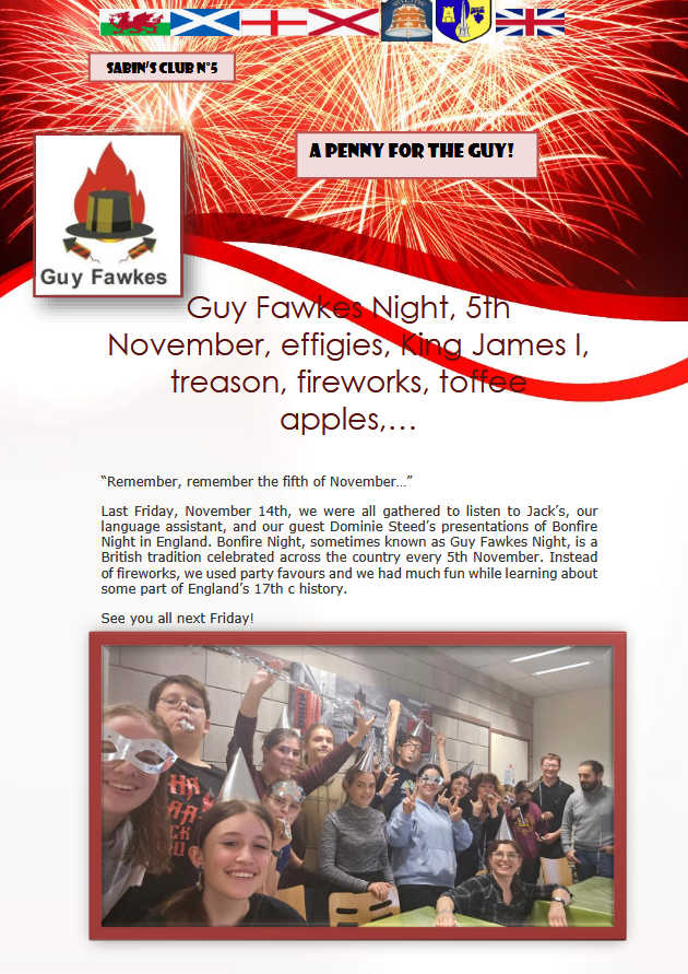 Notre rendez-vous du vendredi portait sur "Guy Fawkes Night",