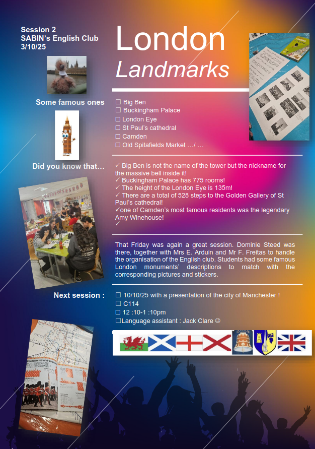 Les principaux monuments emblématiques de Londres n'ont plus de secret pour nos jeunes du club d'anglais.