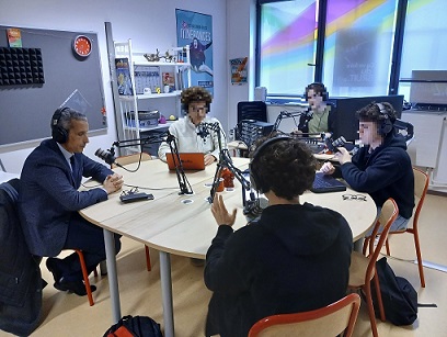 La rencontre s’est poursuivie dans le studio de la webradio du lycée, où quatre élèves journalistes amateurs ont eu le plaisir d’interviewer Monsieur Grini. Ils ont posé des questions pertinentes, portant sur des enjeux locaux et d’actualité, notamment ceux du bassin d’Alès.