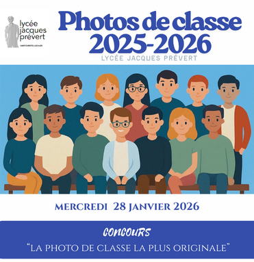 Les photos de classe seront prises dans le hall du lycée le mercredi 28 janvier 2026 au matin.