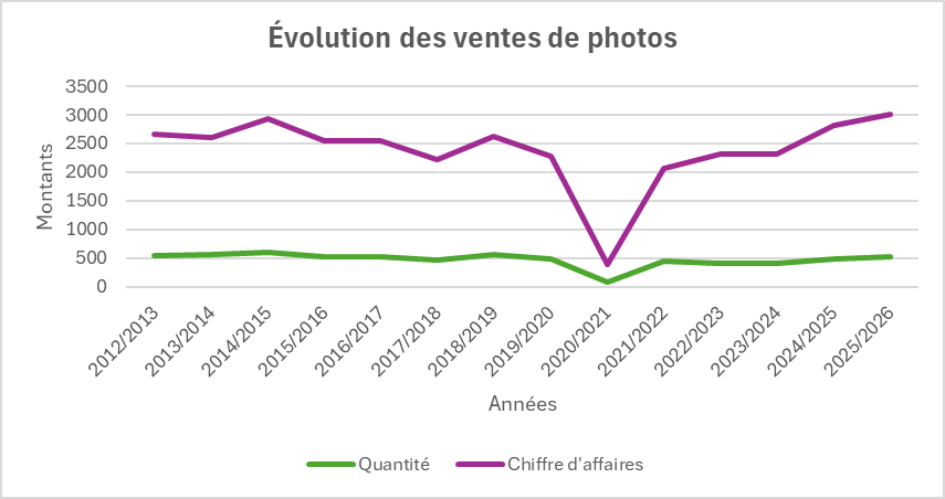 Les ventes de photos de classe 2026 ont été un succès avec 519 photos commandées, un chiffre d'affaires de 3014 € et un bénéfice de 938 €. Ce bénéfice sera réparti 469 € pour l'AS et 469 € pour la MDL.